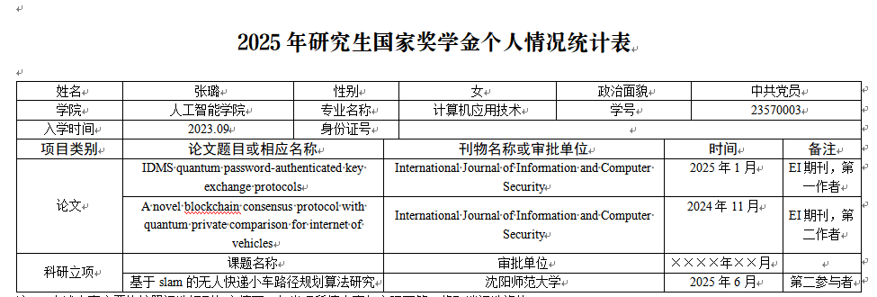 按照我校《关于做好2025年国家(省政府)奖学金评审工作的通知》要求,结合《诸侯ok1133官网学生奖助学金管理办法》《诸侯ok1133官网研究生国家奖学金评选实施细则》,成立了研究生国家奖学金评审工作领导小组(详见附件1),制定了《人工智能学院研究生国家奖学金评选细则》。并将相关文件传达给所有研究生。经过自愿申报,共有1名学生报名。